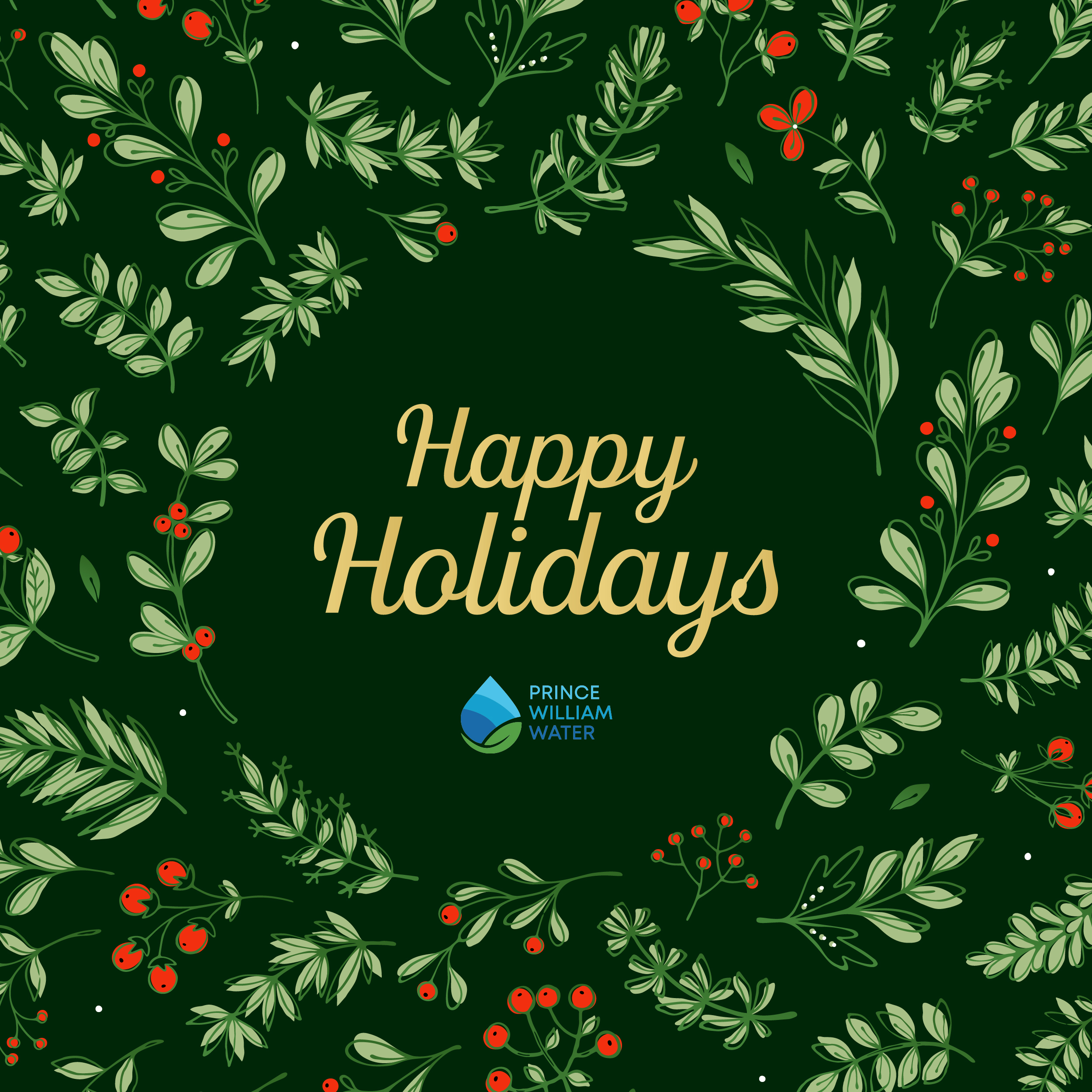 Prince William Water's business office will be closed on Wednesday, December 24 and Thursday, December 25 in observance of Christmas Eve and Christmas Day.