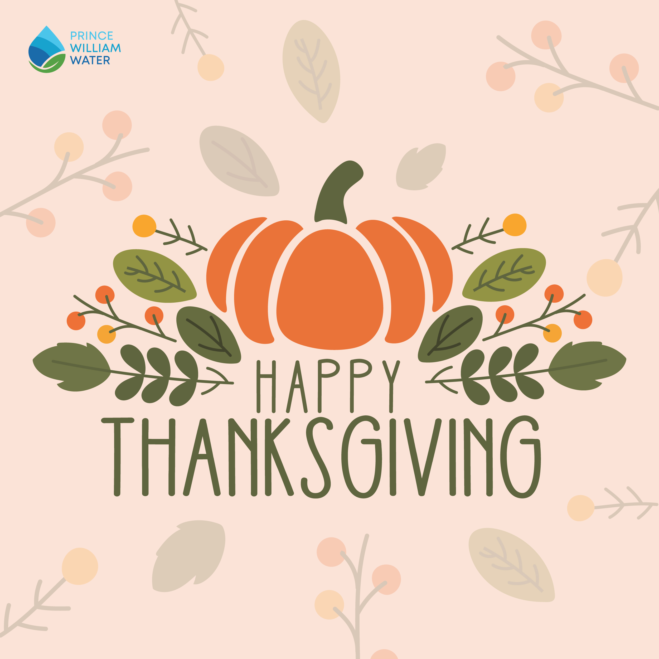 Prince William Water's business office will be closed on Thursday, November 27 and Friday, November 28 in observance of the Thanksgiving holiday.