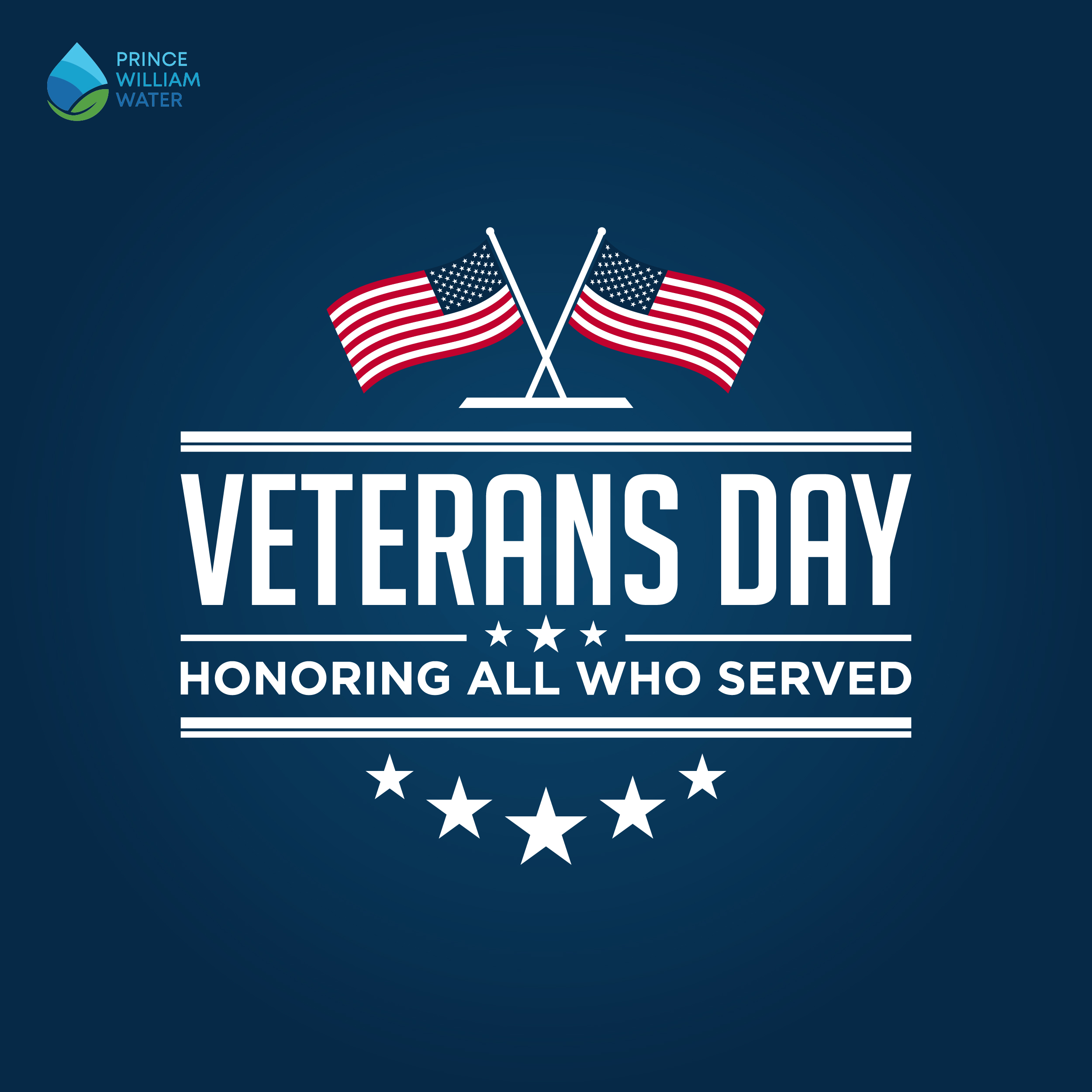 Prince William Water's business office will be closed on Tuesday, November 11 in observance of Veterans Day.