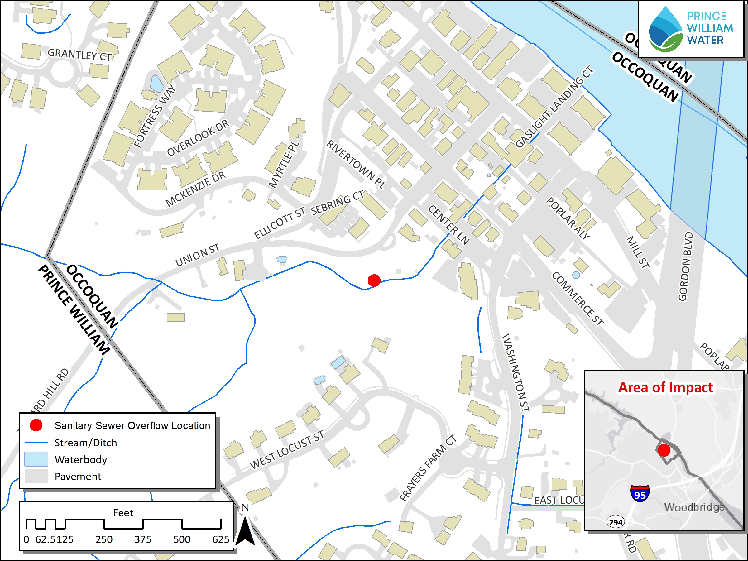 Prince William Water responded to a Sanitary Sewer Overflow (SSO) on Sunday, December 28, 2025. The SSO began near 305 Union Street in Occoquan. An SSO is an overflow of untreated or partially treated sewage from a sanitary sewer system.